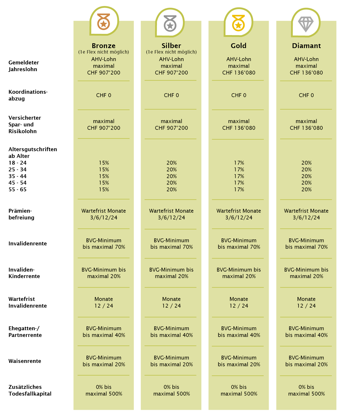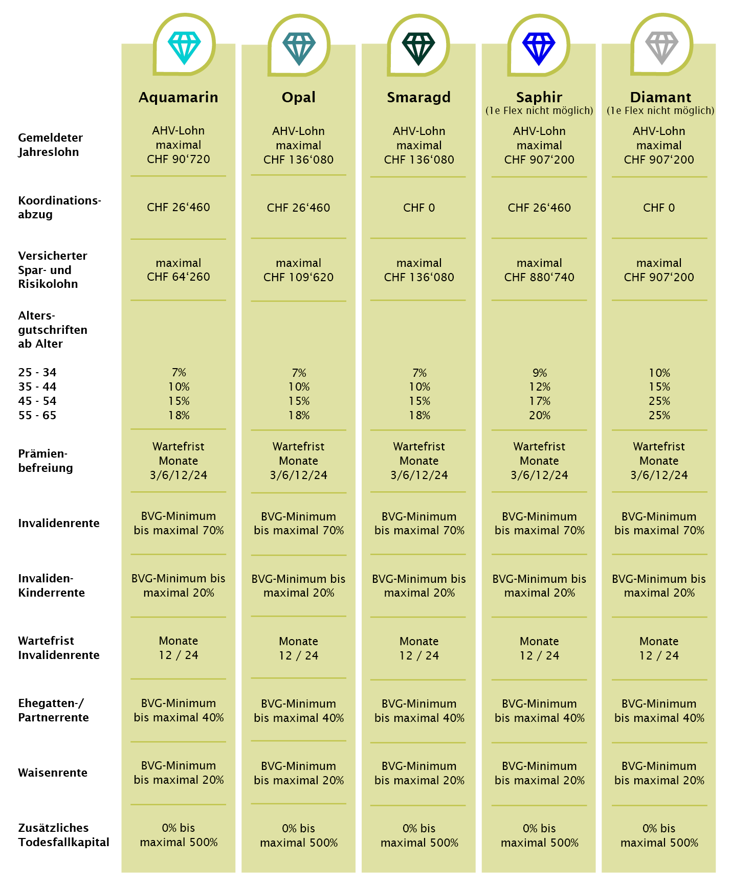 Der Selbständigerwerbende kann seine BVG Vorsorgelösung aus einem von fünf vordefinierten Plänen auswählen.